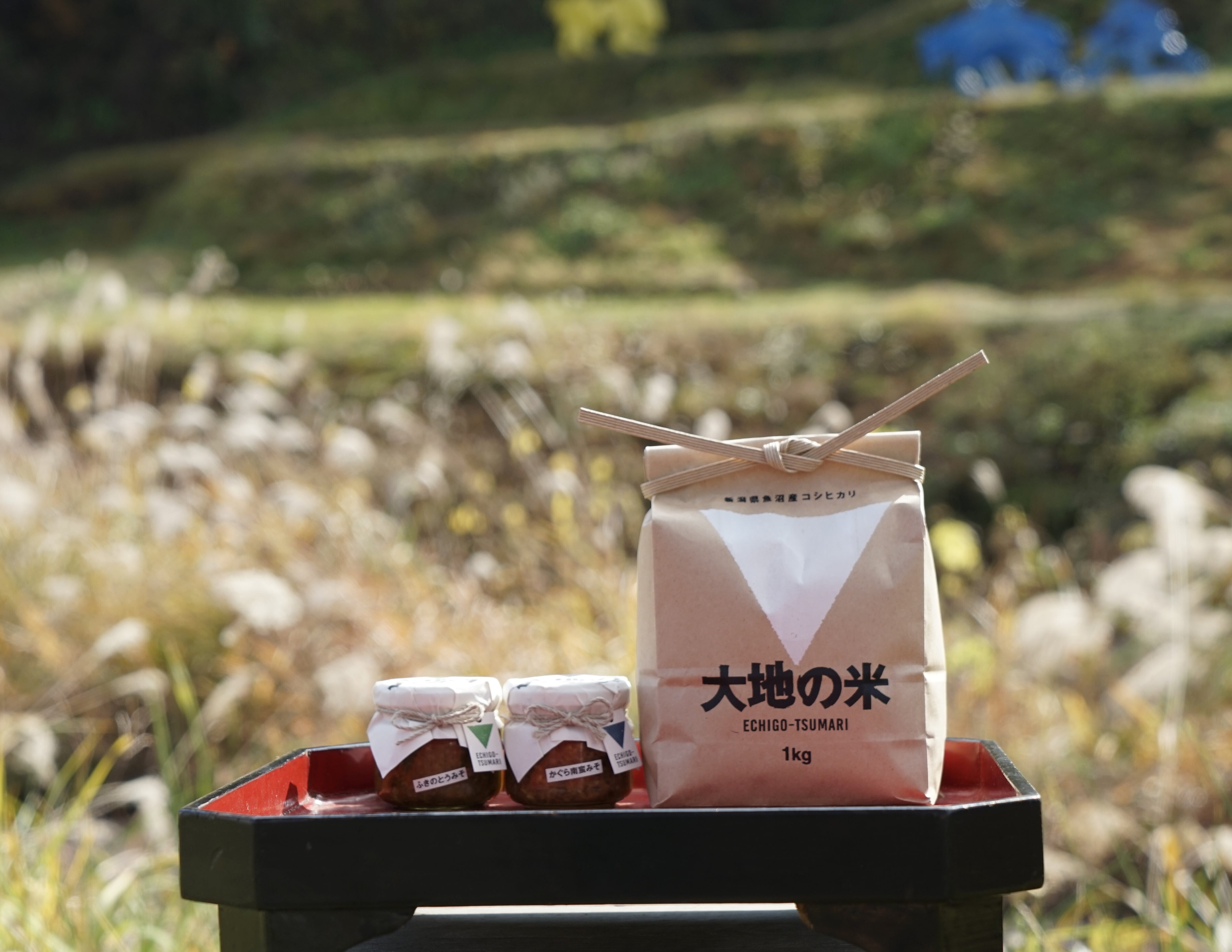 日本有数の棚田がある新潟県十日町市松代地域で「棚田」の景観や生態系を保全していく「まつだい棚田バンク」の活動からできた「大地の米」1kg 。越後妻有特有の昼夜の寒暖差や粘土質な土が産んだ、独特の「甘み」と「粘り気」が特徴の魚沼産コシヒカリです。